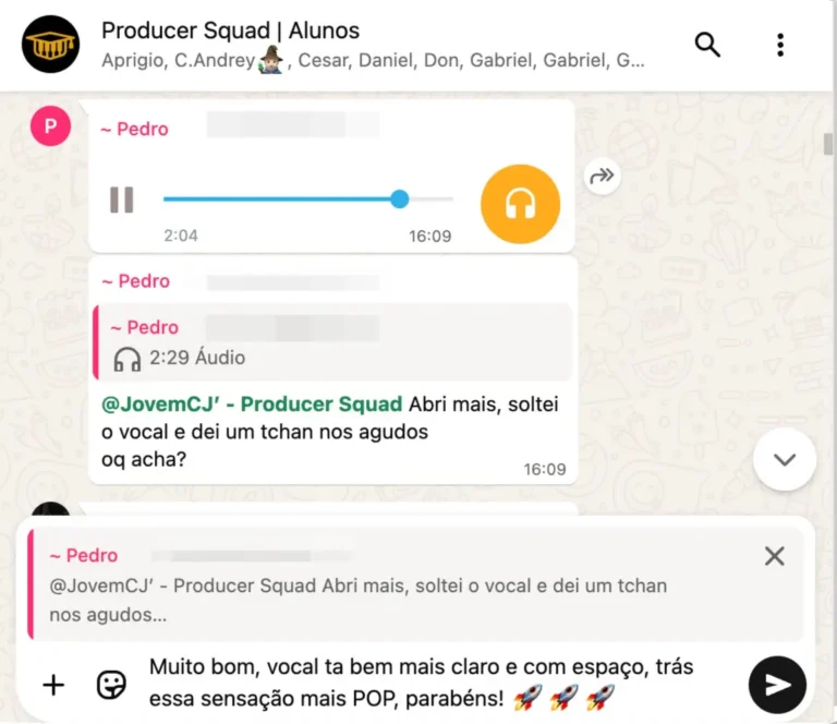 Envie suas produções no whatsapp e tenha feedbacks rápidos para continuar evoluindo.